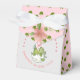 Send your guests home with a sweet treat in these adorable favor boxes! These boxes feature a charming watercolor hatching dinosaur wearing a sweet pink bow. The main part of the box has a whimsical green dino footprint pattern on a pink background, while the flap is adorned with a beautiful pink flower. They are perfect for filling with candies, chocolates, or small keepsakes as a thank-you to your guests. These favor boxes are an essential part of your matching "Girl Can Roar Too" collection and are a delightful way to complete your party theme!