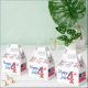 Hooray por el rojo, blanco y azul. Celebra el 4 de julio con esta caja de favores patrióticos. La caja tiene un fondo blanco con fuegos artificiales de banda, en la parte superior. El mensaje en los paneles frontal y posterior dice "Feliz 4 de julio". Los paneles laterales tienen una bandera americana,