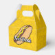 Icono de Hotdog. Iconos de contorno de comida basura fondo de patrón amarillo. Texto personalizado en ambos lados.