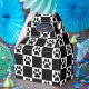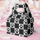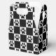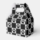Diseño de cuadros negros y blancos con huellas de papel negro en los cuadrados blancos.