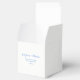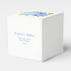 Estas cajas de favores matrimoniales incluyen flores y follaje de la hidrangea azul acuático, así como nombres de novias y novios, mensaje de agradecimiento y fecha de boda. Forman parte de una colección que incluye una amplia gama de artículos de papelería para bodas y productos para novias. Visite las páginas de colección de nuestra tienda para ver toda la gama de productos coincidentes que puede personalizar para su boda.
