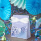 Caja de regalo mostrada en lavanda con una foto impresa de hortensias de bonito y con un arco de cinta blanca. Personalizar este elemento y cambia los nombres personalizados de ejemplo a los suyos o simplemente elimina los nombres si lo desea.