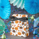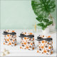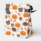 Patrón de halloween super lindo. En este ilustracion se pueden ver calabazas, arañas, búhos, estrellas y dulces. El esquema de color de este diseño de halloween es naranja, negro y blanco.