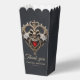 Un corazón gótico asombroso diseñado en un rojo profundo y apasionado. Este corazón simboliza el amor y la conexión de la pareja y está enmarcado por delicados adornos de oro. Estos acentos dorados le dan un toque de lujo y sofisticación al diseño. Las majestuosas alas doradas se despliegan elegantemente desde el corazón, añadiendo un toque dinámico al diseño. Las alas son de una gracia detallada y exuberante, al tiempo que transmiten un sentido de libertad e infinito, perfecto para el inicio de una vida juntos.
