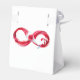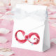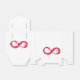 Símbolo infinito de flujo continuo de vino tinto vertiendo en vidrio de vidrio sobre fondo blanco.
