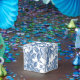 Rosa antiguo azul de tela inspirado en caja de 2" x 2".