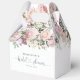 Esta caja de favor de bridal shower personalizada tiene rosas rosadas femeninas y flores de jardín mixtas con hojas y ramas colgantes que enmarcan los bordes del diseño. Una hermosa fuente de letra con acento de corazón se utiliza para el título del evento "bridal shower". Personalice la plantilla de texto con el nombre de la novia y la fecha del evento. ¡Sus invitados amarán llevar a casa algo especial en esta hermosa caja de favor creada especialmente para ellos!