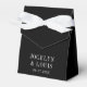 Cajas de favores de boda modernas con un diseño negro minimalista con sus nombres en una fuente grande junto con su fecha boda. Este diseño es lo suficientemente sencillo para un boda formal, pero hace una declaración audaz.