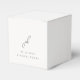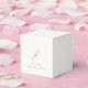 Elegante caja de favores de boda con un diseño clásico con tu monograma en un tipo de letra de guión junto con los detalles de tu evento en un tipo de letra serif tradicional.
