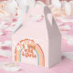 Caja de favores de la fiesta de los Jóvenes Salvajes y Tres Años inspirada en la Retro con arcoiris de estilo hippie, daisies y tipos de letra y colores boho.
