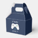 Diseñado para coincidir con nuestras invitaciones y accesorios de la fiesta de cumpleaños Level Up, esta caja de favoritos con temática retro gamer presenta un ilustracion de controlador de juegos en un fondo azul marino con "[Nombre] ha alcanzado el nivel [edad]" en letras de estilo digital vintage.