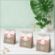 Celebre con estilo con estas elegantes y muy modernas cajas de favores de boda. El diseño incluye un dólar de arena con cinta de coral en una burpía rústica y un fondo de encaje blanco vintage, perfecto para cualquier celebración de matrimonio con temática playera. El diseño es fácil de personalizar con sus propias iniciales de monograma y su familia y amigos estarán encantados cuando reciban estas fabulosas cajas de favores. Se pueden encontrar elementos coincidentes en la colección.