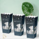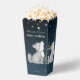 La pequeña ducha de bebé con temática de lobo favorece la caja de regalo personalizada de palomitas de maíz, una cachorro de lobo adorable noche estrellada oscuro fondo caja de palomitas personalizadas.