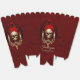 La elegancia oscura del estilo gótico. El fondo es un rojo profundo y rico que ofrece un contraste dramático con los acentos dorados brillantes. El diseño de estilo gótico combina elegancia y misticismo.