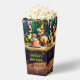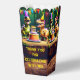 Dino cuatro coloridas fiesta de cumpleaños de dinosaurios favorece una caja de favores personalizada, dinosaurios con gorras fiestas con una torta de cumpleaños fiesta de cumpleaños de dinosaurio caja de favores de palomitas