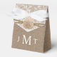 Celebre con estilo con estas elegantes y muy modernas cajas de favores de boda. El diseño cuenta con un dólar de arena rústico con burlap, encaje y gemelos, perfecto para cualquier celebración de matrimonio con temática playera. El diseño es fácil de personalizar con sus propias iniciales de monograma y su familia y amigos estarán encantados cuando reciban estas fabulosas cajas de favores. Se pueden encontrar elementos coincidentes en la colección.
