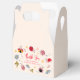 Cajón de bienvenida con el tema de la mariquita, la ducha de bebé, con ilustracion de insectos rojos y rosas con flores silvestres.