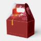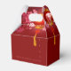 Linternas tradicionales con flores de melocotón y silueta asiática de un edificio como fondo. Diseño en la caja de preferencias gable con fecha y texto a personalizar. Puede cambiar fácilmente el texto (fuente, color, tamaño y posición) haciendo clic en el botón personalizar. Disponible en carpas, cubos y cajas de favores de retiro. Tarjeta de saludo, postal, suministros para fiestas y más... Perfecto para todos los años nuevos hao Dao Tet Vietnamita.