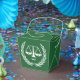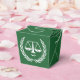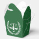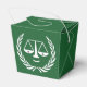 Creativo cumpleaños de abogado o fiesta de graduación de la escuela de derecho favorece regalos que presentan graciosas escalas de justicia sobre fondo verde.