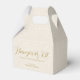 Caja de favores matrimoniales de Hangover kit, tipografía de escritura dorada de personalizable minimalista. El fondo de la textura de la ropa de cama de color beige claro aporta un toque orgánico y elegancia clásica. Hay otros colores disponibles.
