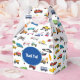 Celebra el cumpleaños de tu niñito con un patrón personalizado de algunos de sus vehículos favoritos — camiones de bomberos, autos de policía, helicópteros y aviones, trenes, taxis, vehículos de construcción, y más! Esta divertida caja de favores de agradecimiento añade un toque especial extra personalizado a la celebración de la fiesta de cumpleaños de tu pequeña. Añadir Gracias sobre el fondo azul (o editar texto según tus preferencias).
