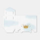 A little prince is on the way! Boy baby shower with gold crown and silver and gold stars with dreamy blue watercolor background