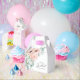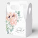 Una caja de regalos para baby shower o despedida de soltera bellamente femenina que presenta un ramo lateral en cascada de amapolas, rosas, eucalipto y follaje colgante en acuarela en tonos pastel suaves de rosa, beige, verde y verde azulado. Las combinaciones de tipos de letra de moda incluyen escritura a mano y serif elegante. Personalice la plantilla de texto fácil de usar con el nombre de la homenajeada para obtener regalos de fiesta bellamente femeninos y elegantes.
