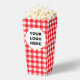 Esta caja de palomitas de gingham roja es la elección perfecta para su próximo evento. Su encantador patrón de cuadros y su techo de vieiras evocan un divertido y retro picnic que es ideal para fiestas, noches de cine y celebraciones. El amplio espacio de personalizable en la parte delantera le permite añadir su mensaje personal, logotipo de negocios o un diseño fotográfico único, lo que lo convierte en un inolvidable favor de la fiesta o en una cafetería profesional de marca. Es una forma elegante y práctica de servir palomitas de maíz u otros dulces a sus huéspedes.