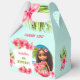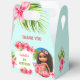 Cuidados y exóticos grandes cajas de gable con el pequeño chica tiki más agradable con un ramo de flores de hibiscos en maravillosos colores de verano para la fiesta de cumpleaños del chica temático hawaiano de verano tropical. Puede elegir entre 3 tamaños de estas cajas de preferencia gable. Personaliza fácilmente el texto. - Kate Eden Art