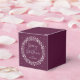 Una corona de Navidad de luces brillantes sobre un fondo de ciruela. La fuente de escritura “Merry Christmas” es una imagen, por lo que se puede cambiar de tamaño, rotar, reposicionar y copiar y pegar en otras áreas de la caja; el resto del texto es totalmente editable. La imagen de luces brillantes también se puede copiar y pegar en diferentes áreas de la caja. Otros colores, diferentes tamaños/formas de caja de favores y artículos coordinados están disponibles en mi tienda.