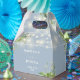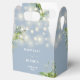 Esta elegante caja de favores de boda con luces de cadena floral botánica de verdor se puede personalizar con su información en tipografía chic sobre un fondo azul polvoriento. Diseñado por Thisisnotme©