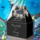 Esta caja de favores de boda con luces de cuerda de escritura minimalista elegante en blanco y negro se puede personalizar con su información en tipografía chic. Diseñado por Thisisnotme©
