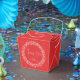 Una corona de luces brillantes contra un fondo rojo. El tipo de letra del guión "Gracias" es una imagen, por lo que se puede redimensionar, rotar y reposicionar. El resto del texto es totalmente editable. La imagen Sparkling Lights también se puede cambiar de tamaño y mover. Hay otros colores, diferentes tamaños/formas de caja de favores y elementos de coordinación disponibles en mi tienda.