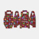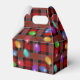 Este diseño festivo presenta Navidades brillantes iluminados con luces en una plancha tártara roja.