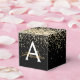 Caja de Regalo Elegante Dorada y Negra con Brillo y Destellos Falsos. Esta caja de regalo se puede personalizar para incluir tu inicial y nombre y es un regalo ideal para cumpleaños, boda, despedida de soltera, ducha de novia o baby shower. Por favor, contacta al diseñador para obtener artículos personalizados a juego.