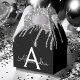 Caja de regalo de papel plateado y negro con brillo Glitter Monograma Nombre e inicial. Esto hace que el regalo perfecto de cumpleaños número 16, boda, ducha de novia, aniversario, ducha de bebé o despedida de soltera para alguien que ama el lujo glamoroso y los estilos chic.