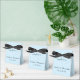 Qué maravillosa, minimalista y personalizada caja de favores de partido para un Boda u otra ocasión. En la parte delantera, Nombres y eventos daban en lujosa tipografía negra sobre un fondo azul pálido. Al frente y al revés "Gracias por celebrar con nosotros" (o tu texto personalizado). Moderna, elegante y moda caja de favores de boda. Todos los derechos reservados © 2021 Alan & Marcia Socolik.