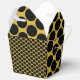 Lleve estilo audaz a su evento con estas cajas de favor para llevar de color dorado metálico, acentuadas con un diseño moderno de punto negro. Con un tamaño de 3x2.25x3.125 pulgadas, son perfectas para caramelos, regalos pequeños o golosinas para fiestas. Elegantes, resistentes y con estilo, ideales para bodas, cumpleaños y celebraciones sofisticadas.