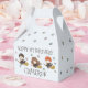 Make your little one's celebration truly magical with this personalized Harry Potter favor box. The cup features adorable chibi-style illustrations of Harry, Hermione, and Ron flying on their broomsticks amidst a sprinkle of colorful stars. This party favor can be customized with the birthday child's name and age, creating a special and personal touch for your party table. It's the perfect way to serve treats and serves as a wonderful keepsake for a magical celebration.