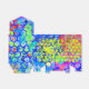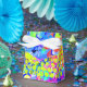 Este graffiti digital tiene todos los colores vivos de los peces de agua salada. Los tonos azules se mezclan con el amarillo, el naranja, el violeta, el verde limón, el rosa, el agua y el negro. Las diferentes texturas y opacidad dan profundidad al diseño.