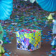 Este graffiti digital tiene todos los colores vivos de los peces de agua salada. Los tonos azules se mezclan con el amarillo, el naranja, el violeta, el verde limón, el rosa, el agua y el negro. Las diferentes texturas y opacidad dan profundidad al diseño.