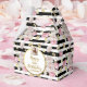 Una caja de favores super linda con un texto de foto y personalizado rodeado por un acento dorado y ambientado en un fondo de rayas blancas y negras acentuado con mariposas doradas, rosas rosadas y margaritas blancas. Perfecto para cualquier edad de cumpleaños, novia o ducha de bebé, boda, jubilación, aniversario, graduación y más.