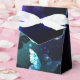 Fabuloso, brillante, azul y amarillo, mariposa nocturna sobre fondo oscuro.