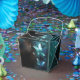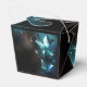 Mariposas brillantes nocturnas de menta sobre fondo abstracto negro.