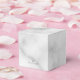 Añada un toque de estilo único a sus regalos con esta elegante y elegante caja de favoritos de patrón de mármol blanco con monograma y nombre en sans grises modernos estilo de fuente serif sobre fondo de mármol blanco. Perfecto para favores matrimoniales, regalos de damas de novias, regalos de vacaciones, regalos de reuniones familiares y para cualquier ocasión especial.
