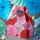 Un ilustracion extremadamente detallado de capas y capas de rosas con sangre completa en rojo, rosa y lavanda.