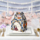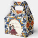Mehndi y sangeet India favorecen las cajas de favores impresas personalizadas, azulejos vintage patrón moderno arco adorable pareja de bailarinas florituras decoración de lámparas Mehndi y sangeet boda mehndi caja de favores