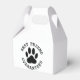 Una huella de una pata de perro negro con texto: Mejor Amigo. Garantizado. Cajas de favores personalizados en blanco y negro para los amantes del perro. Diseño original con efecto de angustia aplicado a la imagen y al texto. La decoración es ideal para fiestas de perros, mascotas y comestibles.
