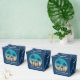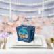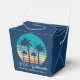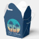Esta encantadora caja de Navidades hawaianos ofrece un atardecer tropical en la playa sobre un fondo azul fresco con un dibujo de palmeras costeras contra una puesta de sol junto al mar. Mele Kalikimaka escrito en tipografía cursiva en esta caja de regalo de vacaciones familiares de bonito.