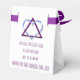Las elegantes Banquetas Favor para sus invitados Bat Mitzvah incluyen la moderna y sofisticada interpretación de Leslie Sigal Javorek de la Estrella de David como un corazón peringuil interconectado con un triángulo de color orquídea radiante. Los campos de texto de cinta morada y personalizable completan el aspecto.